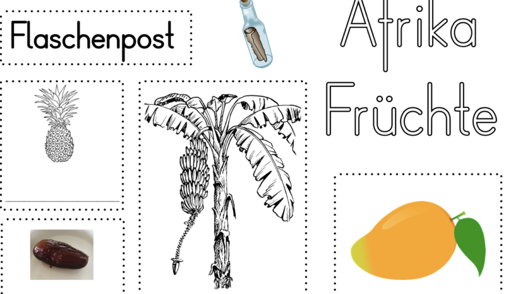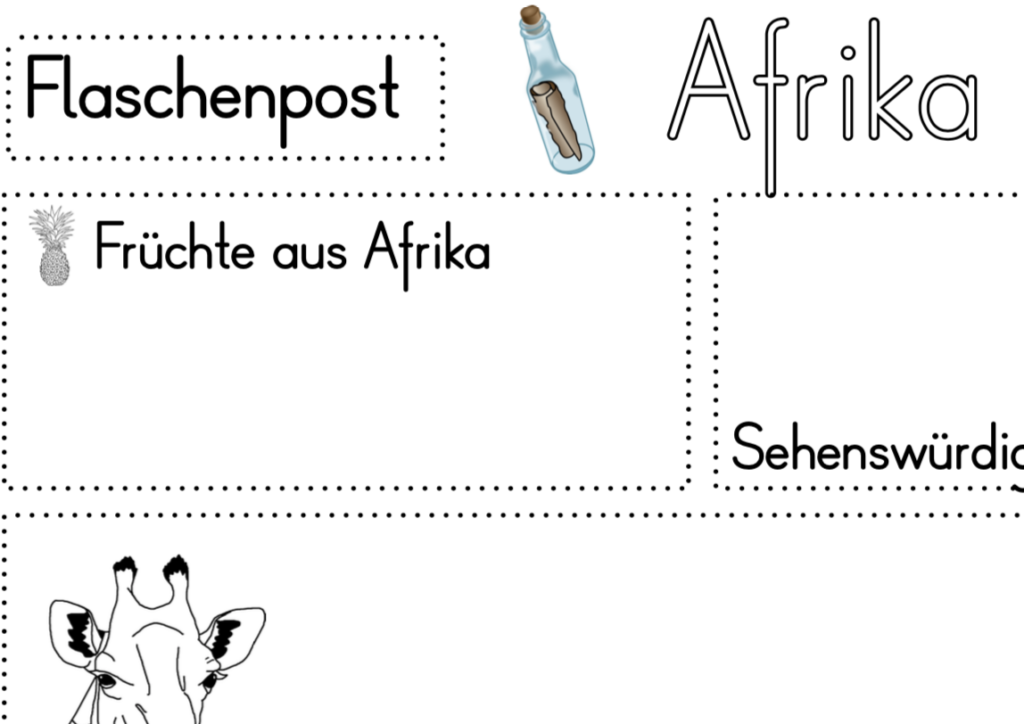 Mit vielen Bildern und Bücher haben wir einige Fakten zu Afrika bzw. Madagaskar (die Flaschenpost reist im Bilderbuch dorthin) besprochen, die im Anschluss auf den Arbeitsblättern festgehalten wurden.