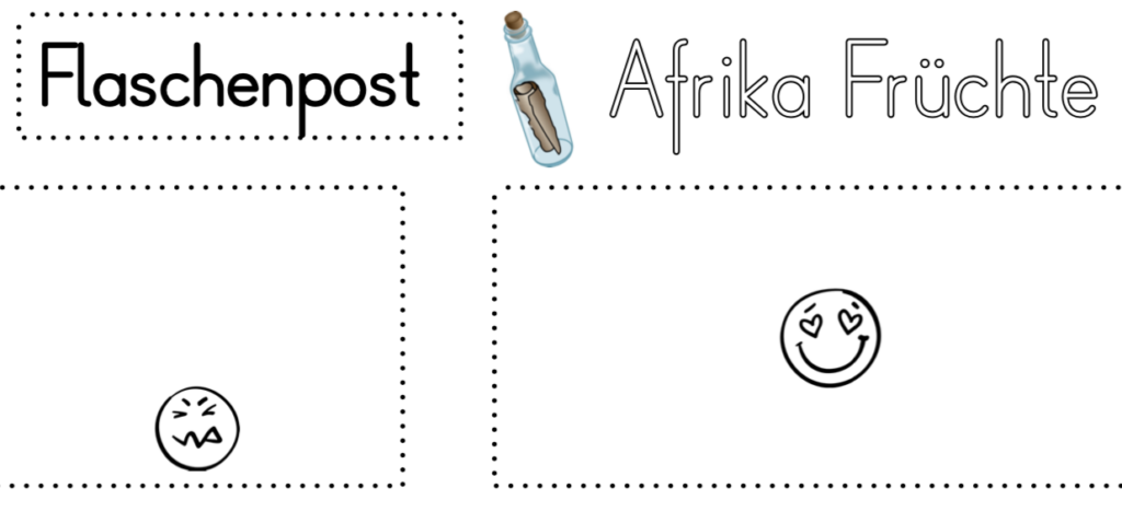 Die Früchte gab es nicht nur in Bildform und zur Beschriftung auf dem Arbeitsblatt, sondern konnten von den Kindern auch getestet werden… je nach Geschmacksempfinden wurden sie zu den entsprechenden Smileys gemalt.