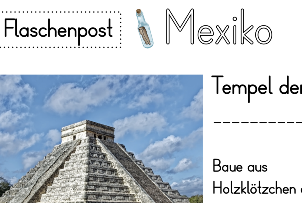 Kurzer Einblick zum Stundeneinstieg zu Mexiko. Neben der Tortilla, wurden die Maya Tempelanlagen, der Tag des Todes und als besonders Tier die Seekuh besprochen.