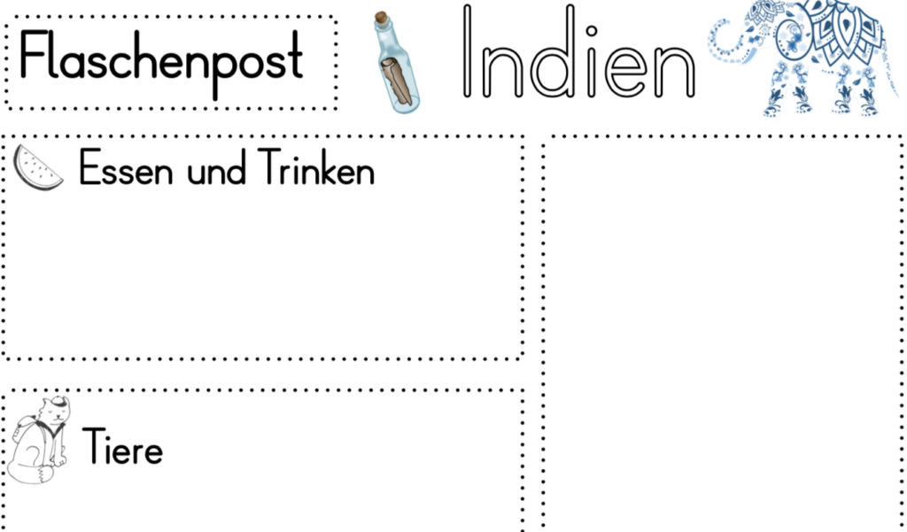 Als Sehenswürdigkeit haben wir uns den Taj Mahal angeschaut, YouTube: Taj Maha und zum Thema Tiere haben wir uns näher mit dem indischen Elefanten befasst. Da dieser in Indien sehr verehrt und zum jährlichen Elefantenfest bunt geschmückt wird, konnten die Kinder dies auf dem Arbeitsblatt und im Kunstunterricht nachstellen.