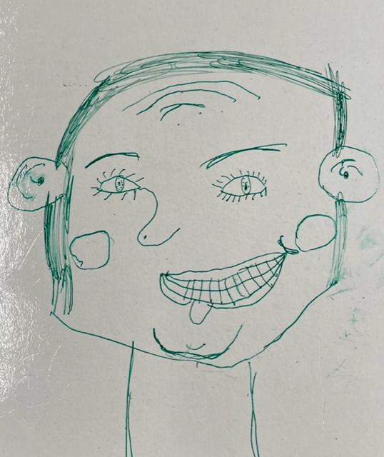 Im Anschluss hat jedes Kind sein eigenes Porträt gewürfelt und mit Bleistift auf ein A4 Blatt gezeichnet. Danach wurde das Gesicht mit Filzstiften ausgemalt und zum Schluss mit einem schwarzen Stift nachgezeichnet.