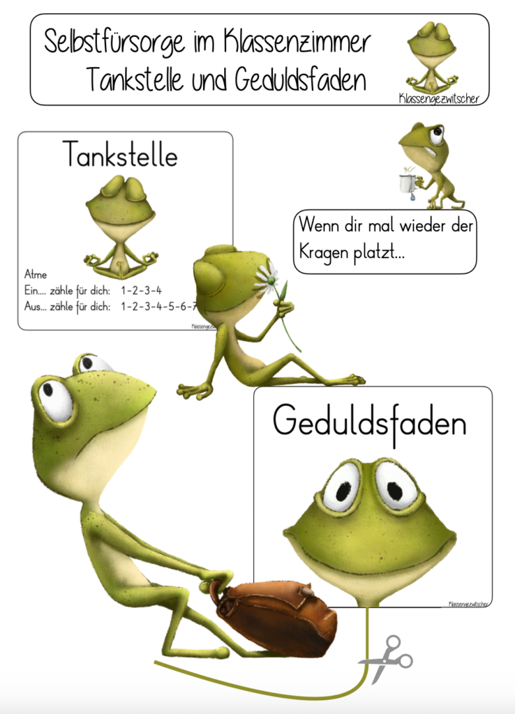 Mit dem Plakat der Tankstelle hast du die Möglichkeit eine kleine kurze Auszeit für dich, aber auch für deine Schulkinder in den Schulalltag einzubauen. Die bewusste Atmung kann eine einfache Quelle sein, die körperliche und mentale Energie zu steigern, den Stress zu reduzieren und das Wohlbefinden zu steigern. Die tiefe Bauchatmung aktiviert den Parasympathikus zur Entspannung und der Herzschlag kann sich dadurch beruhigen. Regelmäßiges Training könnte sogar die Leistungsfähigkeit fördern. Hänge das Plakat an einen ruhigeren Platz im Klassenzimmer. Die Einführung zu der Atemübung könnte gemeinsam stattfinden. Den Kindern wird dabei der Grund und die Methode erklärt. Atme langsam und tief durch die Nase ein, idealerweise in den Bauch. Dafür können die Kinder auch ihre Hand auf den Bauch legen Beim Ausatmen wird der Atem langsam durch die Nase oder den Mund ausgeblasen. Das Ausatmen sollte deutlich länger dauern als das Einatme.