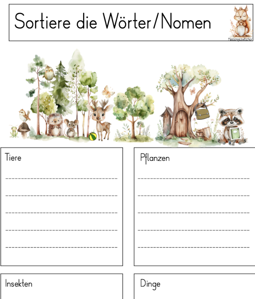 Für das Dossier zum Eichhörnchen haben wir das Material von Primaryteacher bei eduki verwendet. Da die Kinder bereits ähnliche Arbeitsblätter zum Fuchs bearbeitet haben, ist ihnen das Ausfüllen recht leicht gefallen.