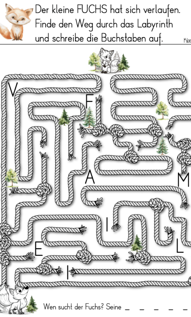 Gesammelt werden die Arbeitsblätter in einem Dossier. Dazu gibt es ein passendens Deckblatt, welches ich auf die rechte Seite eines A3 Blatt kopiere und mittig falte- so entsteht ein einfaches Mäppchen. Das Deckblatt gibt es gleich hier 🙂 Das Material kannst du bei Interesse auf eduki bei Klassengezwitscher finden. Für den süssen Plüschfuchs mit seinen vielen Mustern auf dem Fell gibt es auf meiner Seite mit den Lieblingsartikeln einen externen Link.
